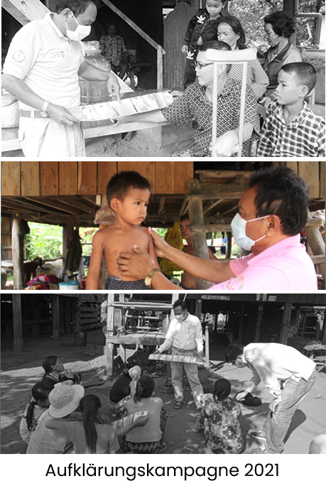 In Kambodscha führen wir Aufklärungskampagnen bei Textilarbeitern durch, die wir über das Erkennen erster Symptome von Lepra, den Krankheitsverlauf und die Heilungsmöglichkeiten informieren. Damit erreichen wir jedes Jahr 30’000 Arbeiterinnen und Arbeiter – und ebenso viele Familien werden auf diese Weise für die Thematik sensibilisiert.